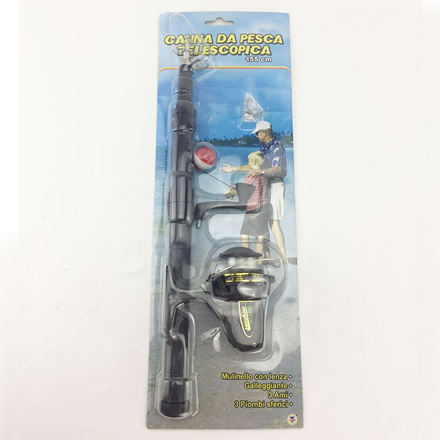 1.60m Telescopic Rod + Fishing Reel with Line + 3 Hooks + 3 Sinkers + 1 Float